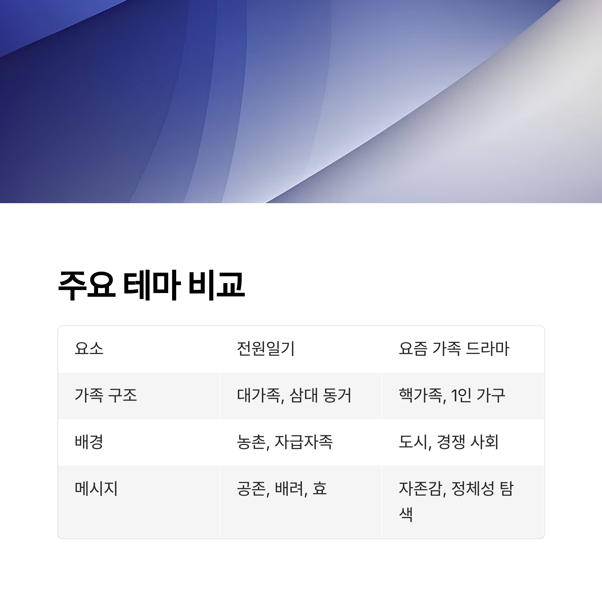 이 글에서는 ‘전원일기’와 요즘 가족 드라마의 차이를 비교하며