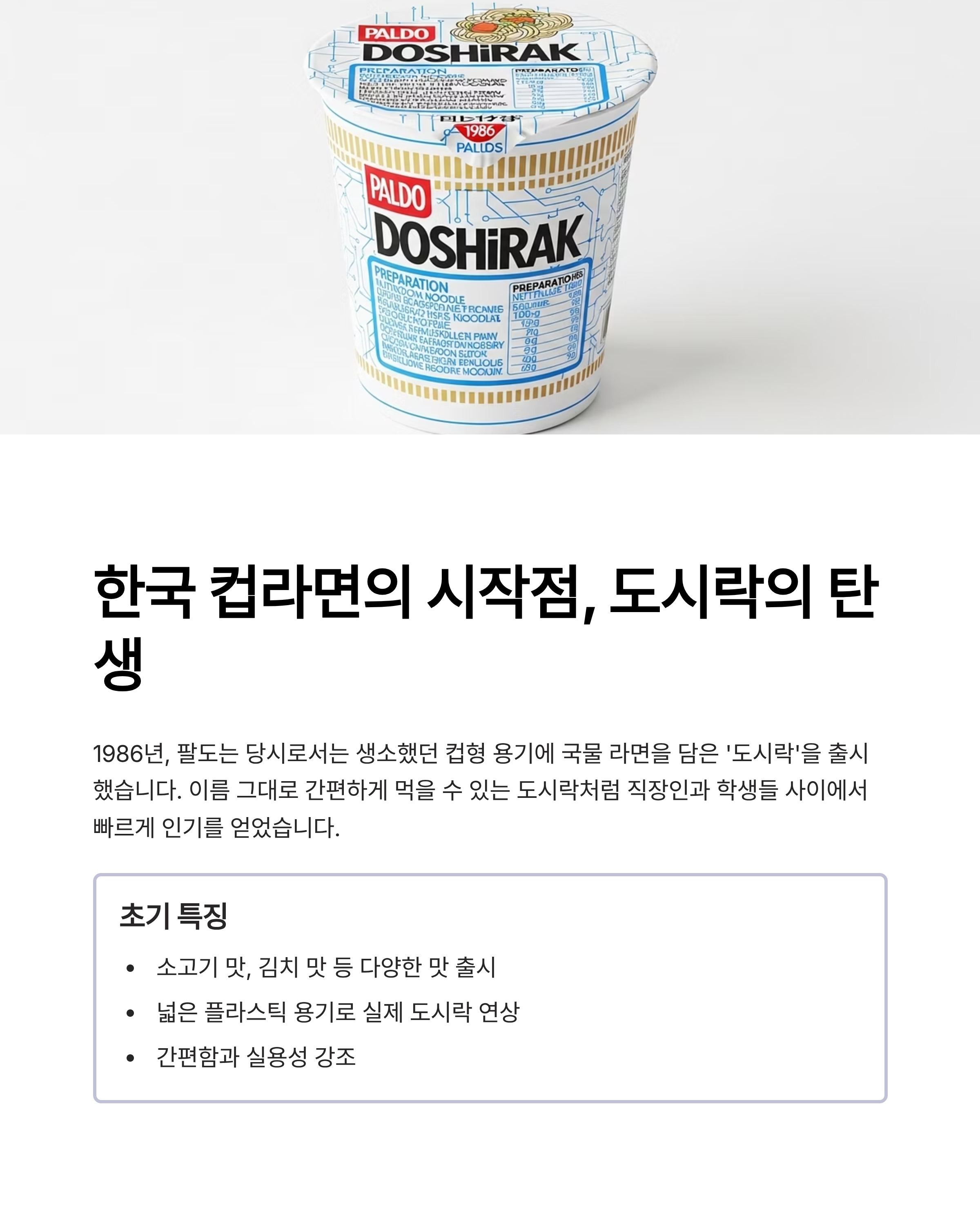 불릴 만큼 인기를 끌고 있습니다. 이 글에서는 팔도 도시락의 탄생 배경과