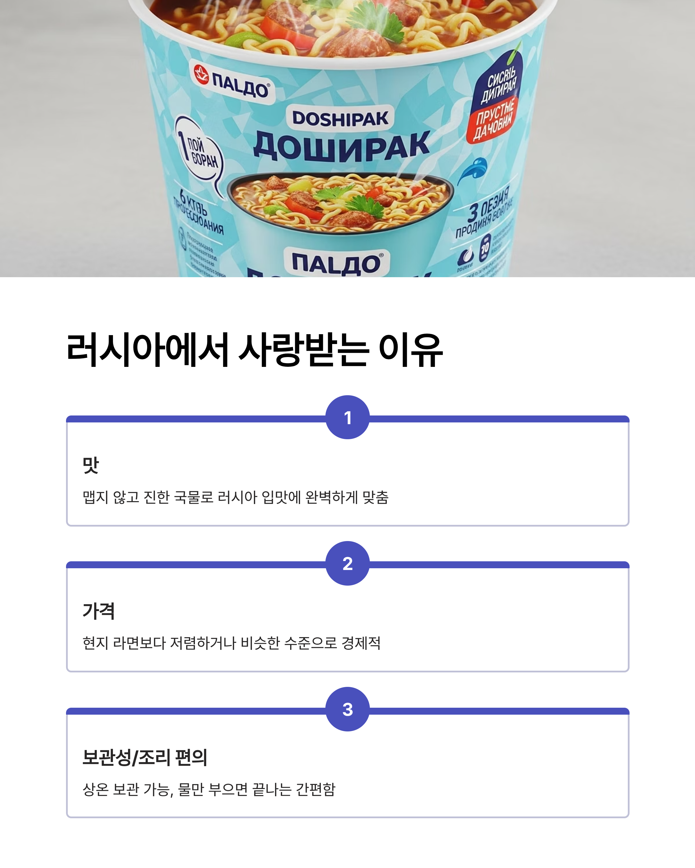 특히 해외 시장에서의 반응이 뜨겁고, 그중 러시아에서는 '국민 컵라면'이라