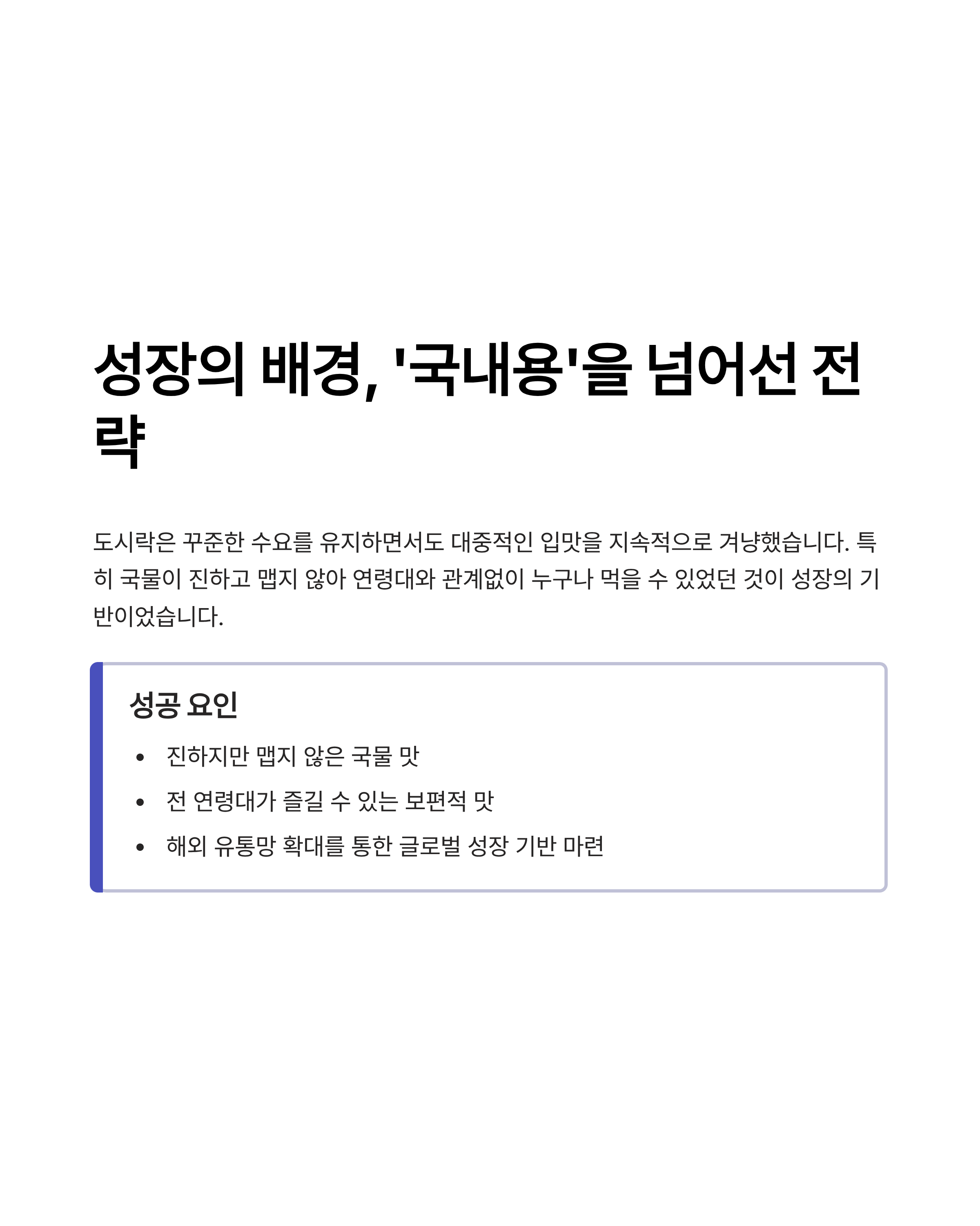 도시락은 꾸준한 수요를 유지하면서도 대중적인 입맛을