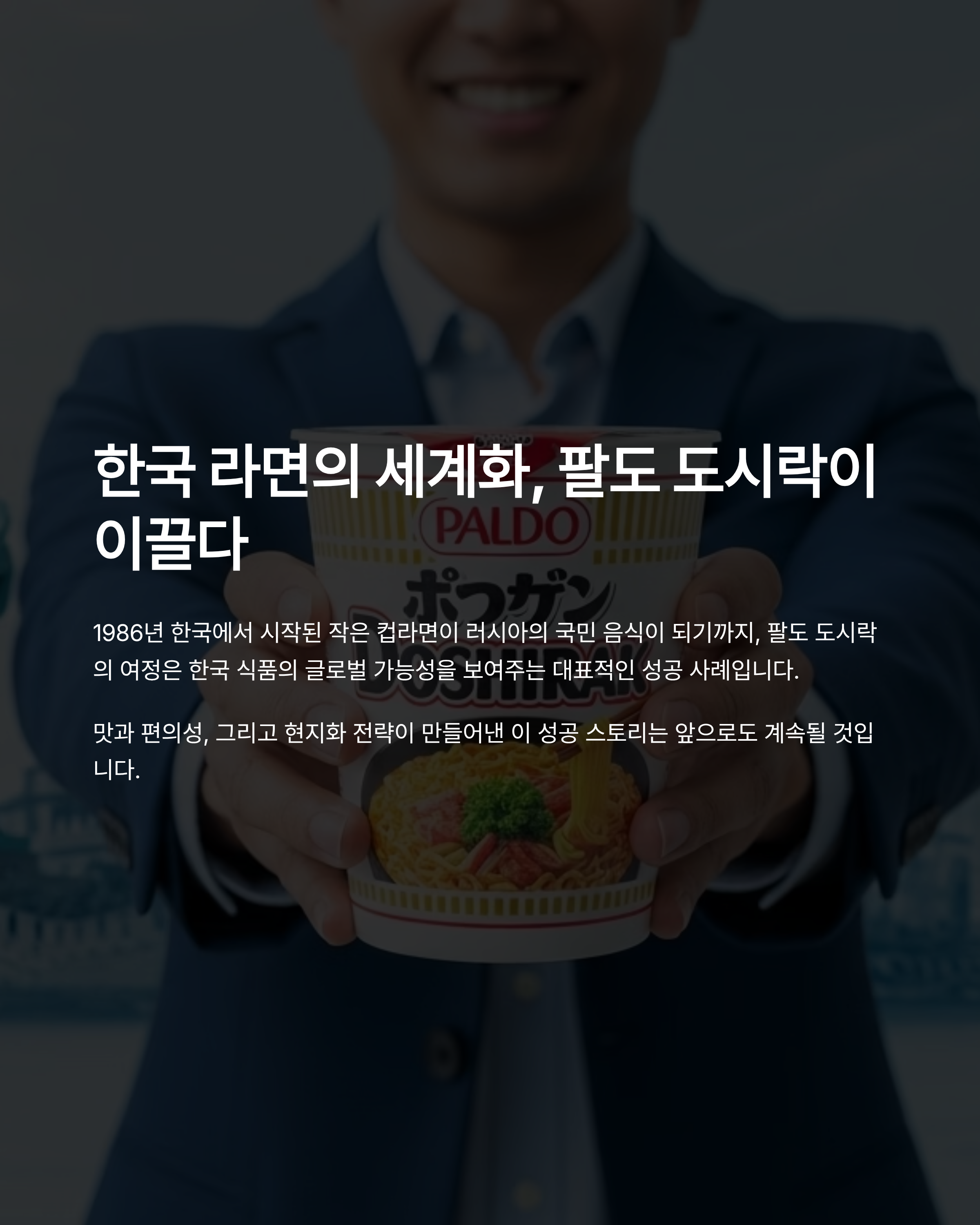 팔도 도시락은 1990년대 초반 러시아 시장에 처음 진출했습니다.