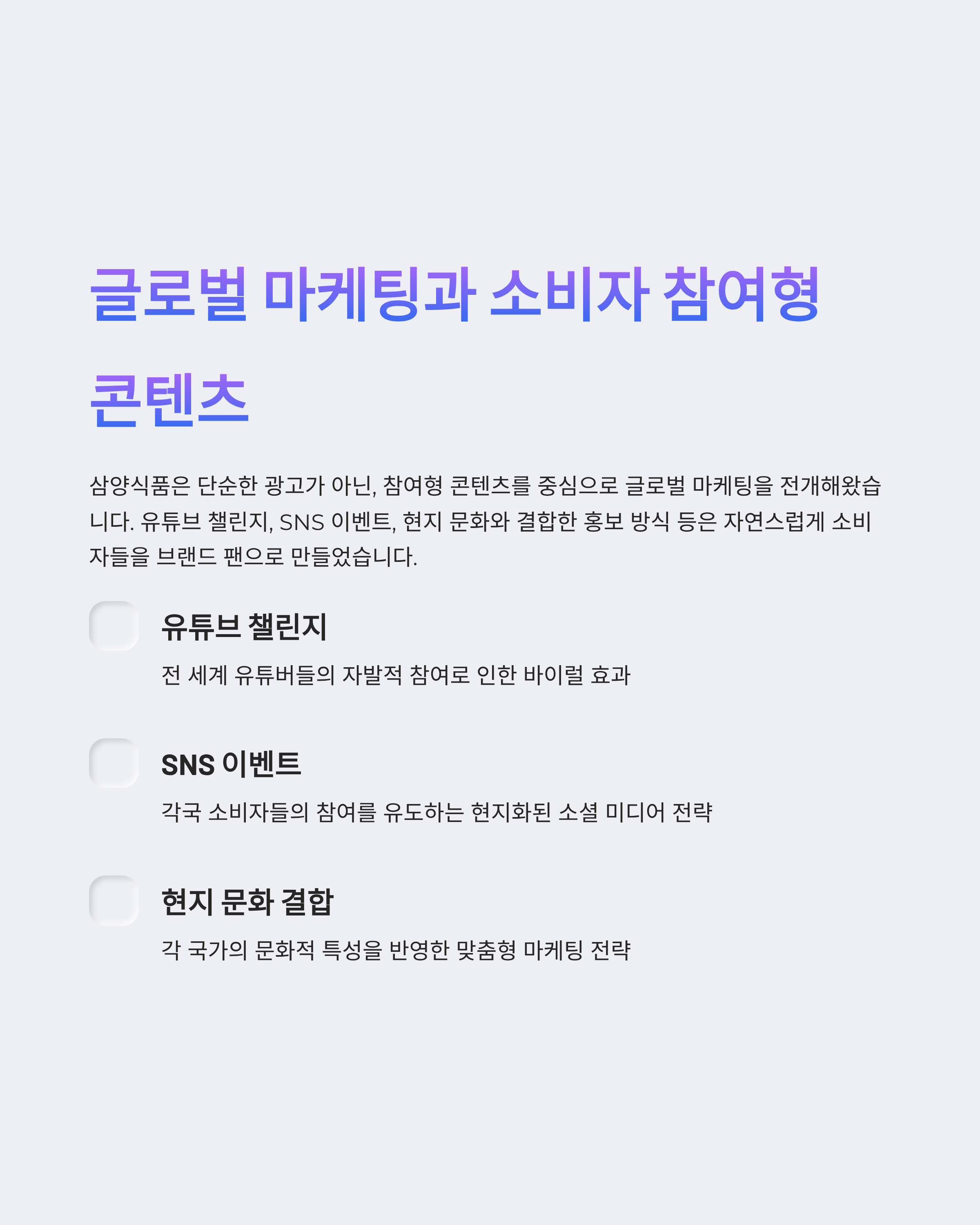 삼양식품은 단순한 광고가 아닌, 참여형 콘텐츠를 중심으로
