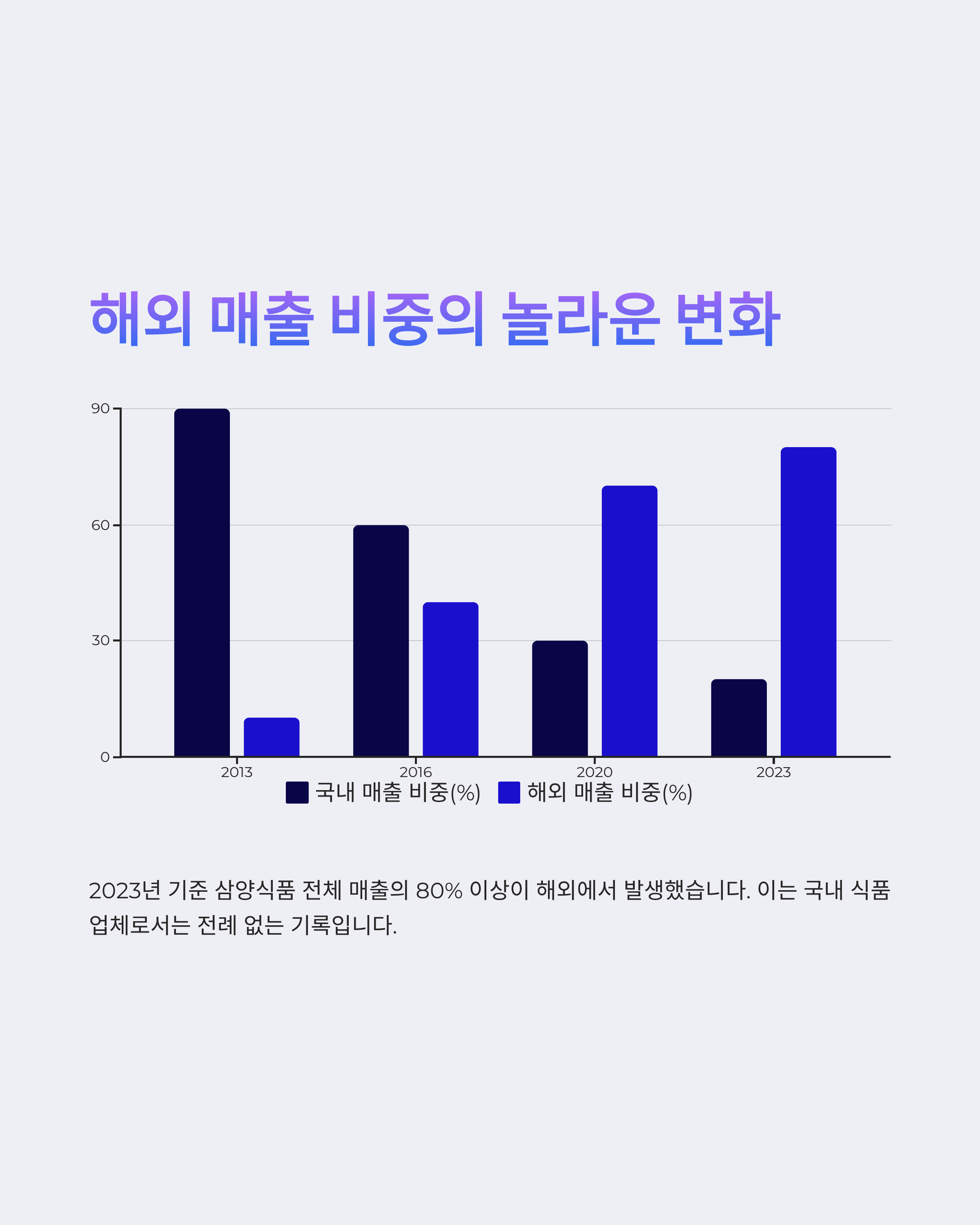2023년 기준 삼양식품 전체 매출의 80% 이상이 해외에서 발생했습니다.