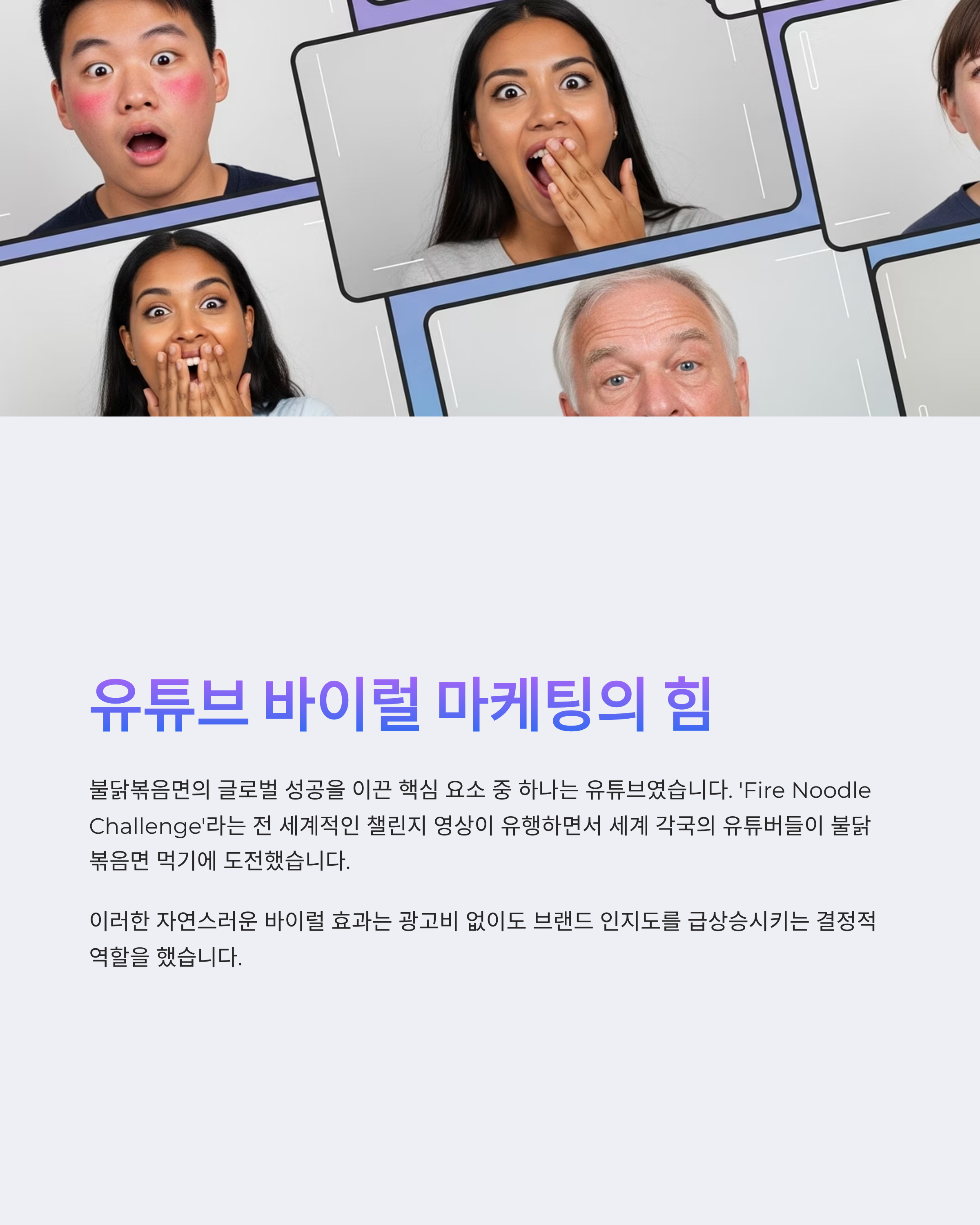 불닭볶음면의 글로벌 성공을 이끈 핵심 요소 중 하나는 유튜브였습니다.
