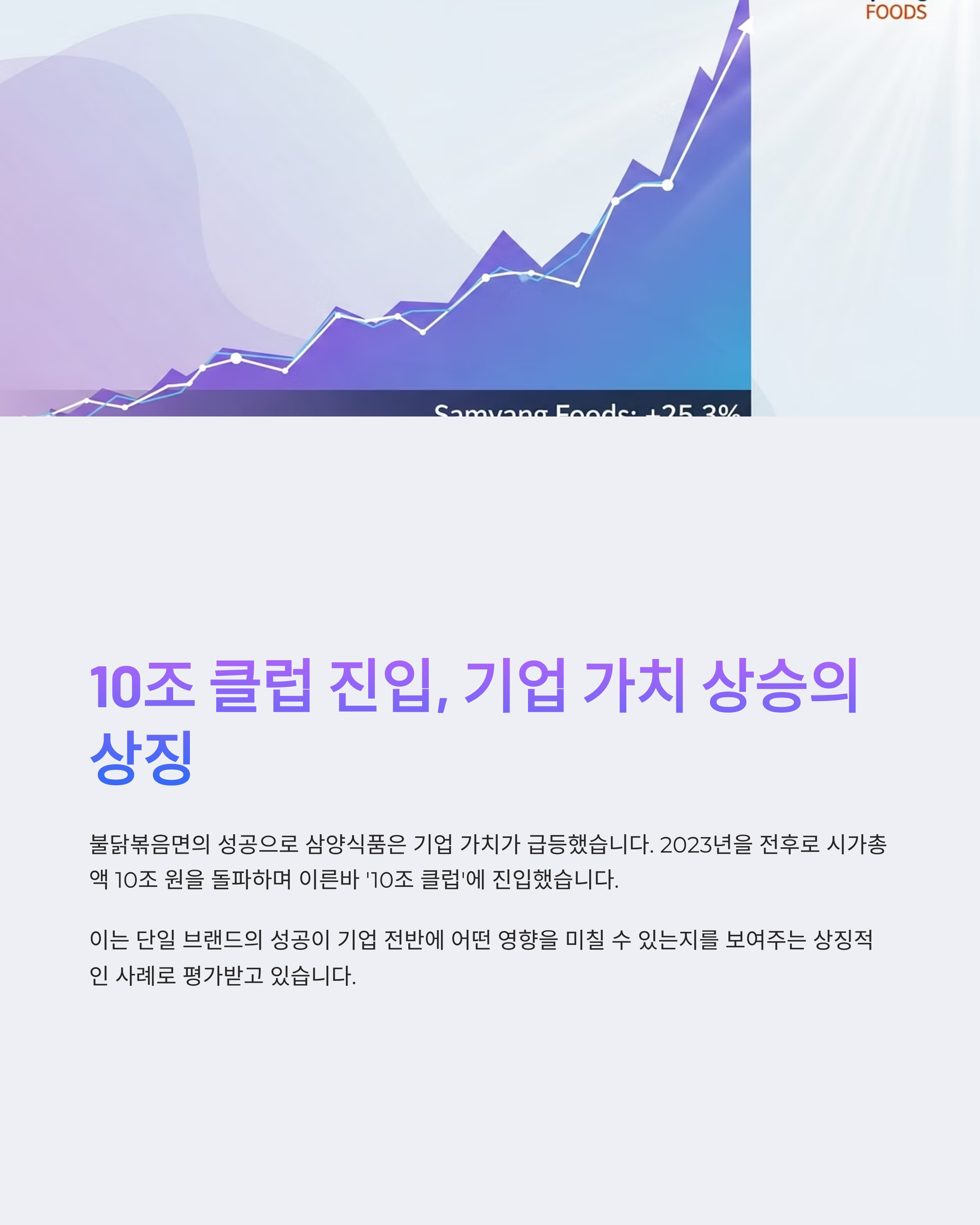 불닭볶음면의 성공으로 삼양식품은 기업 가치가 급등했습니다.