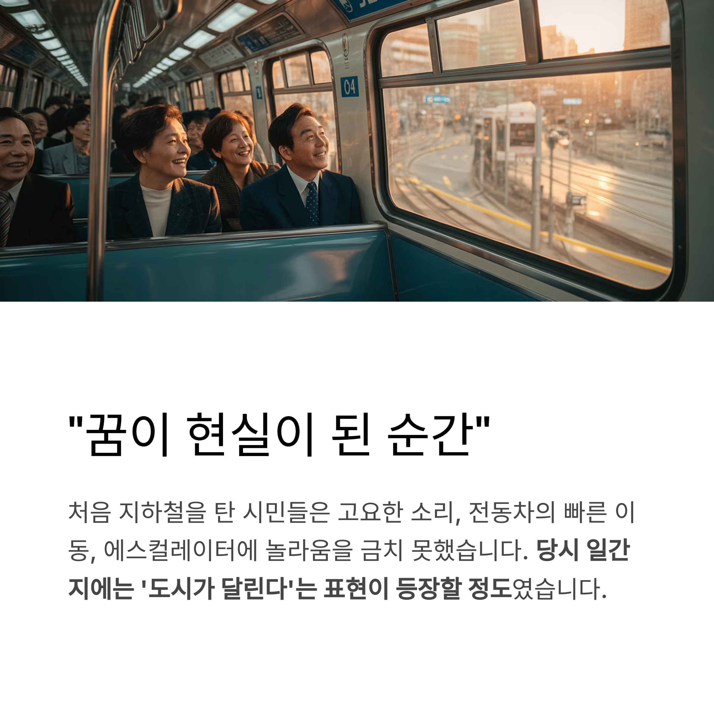 버스와 택시에 의존하던 시대, 지하철의 등장은 마치 SF영화 속 장면처럼 느껴졌습니다.