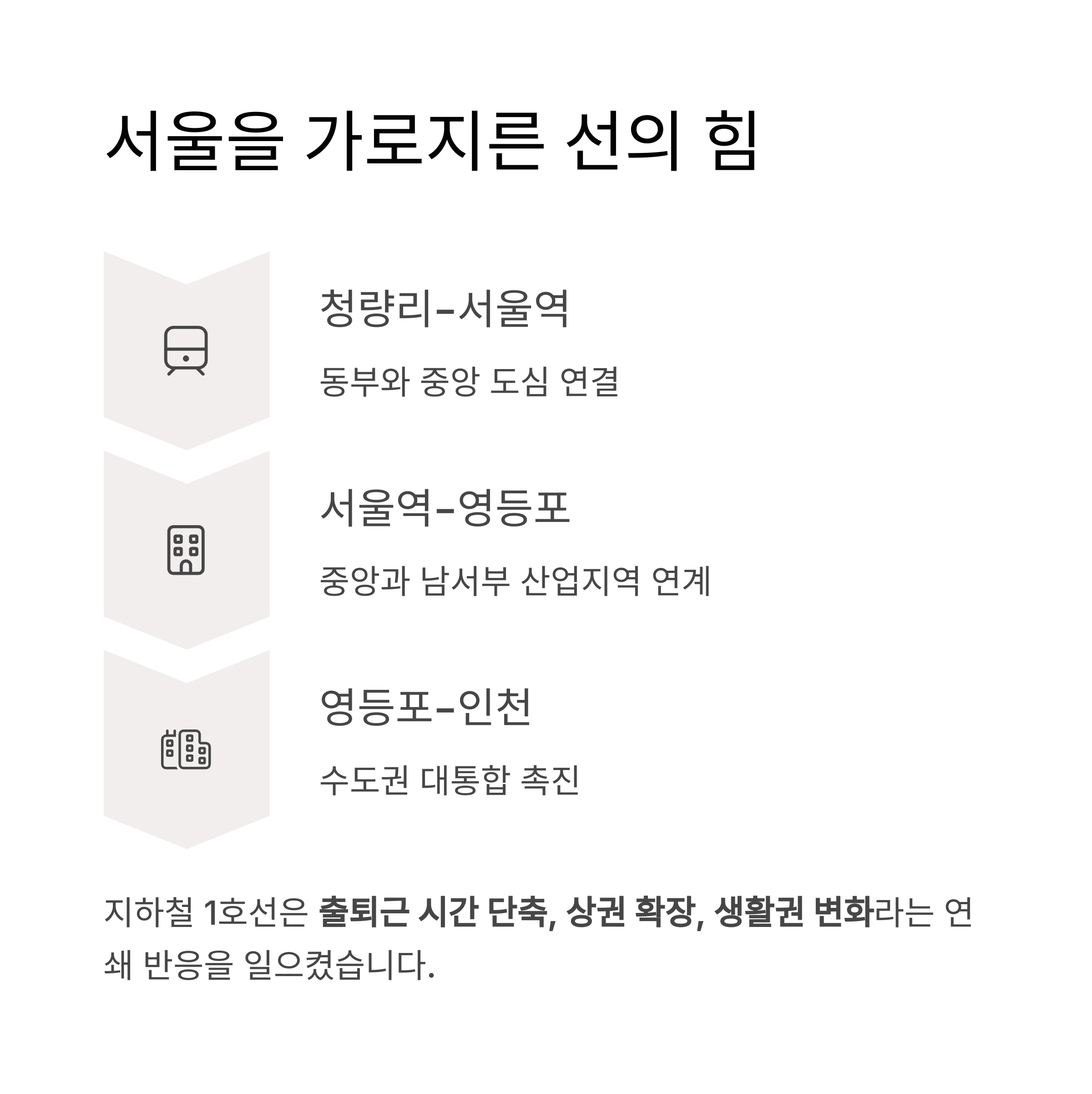 지하철 1호선은 단순한 선 하나가 도시를, 사람을, 나라의 시간을 바꿀 수 있다는 증거입니다.