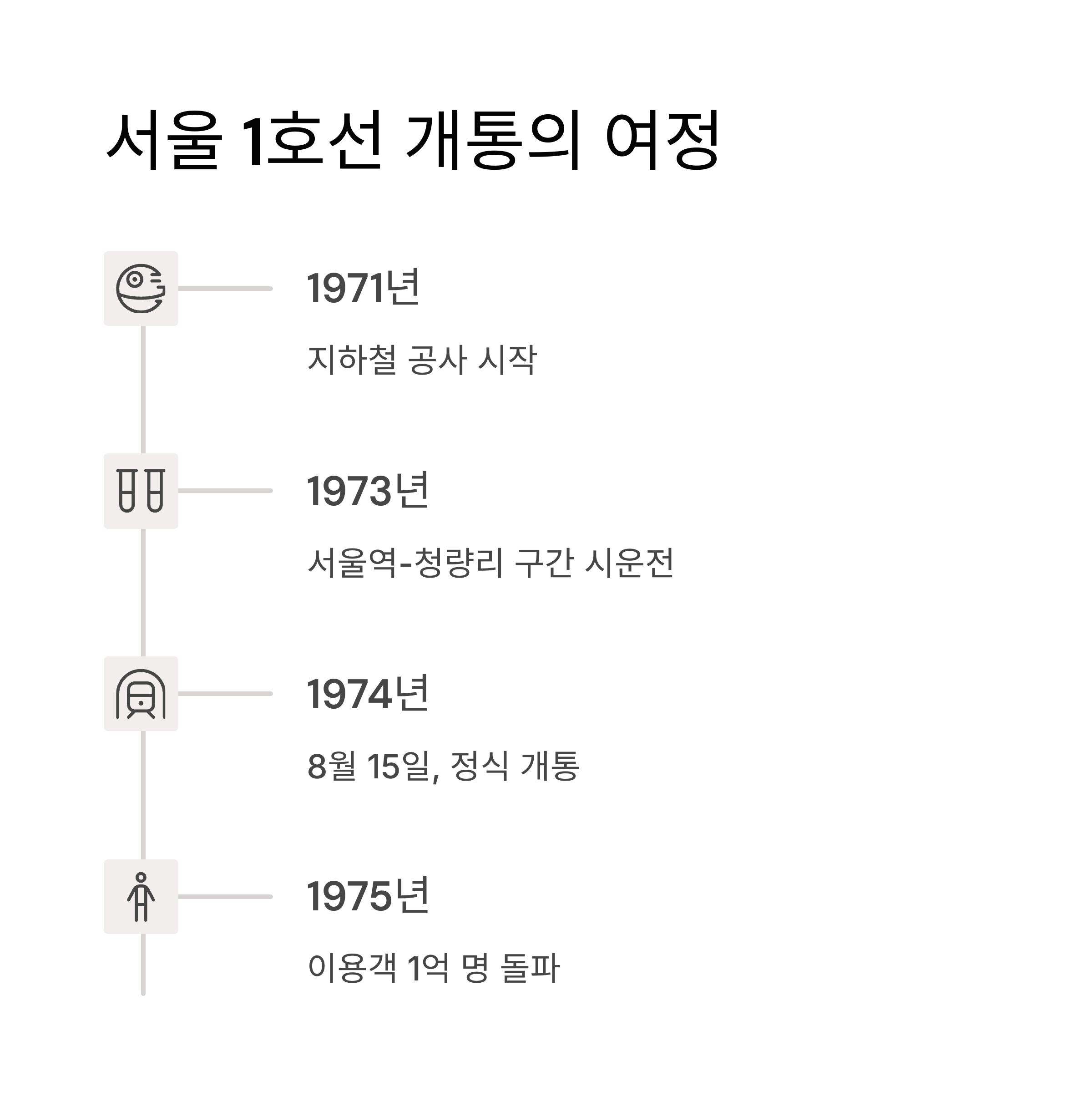 타임라인으로 보는 서울 1호선 개통의 여정