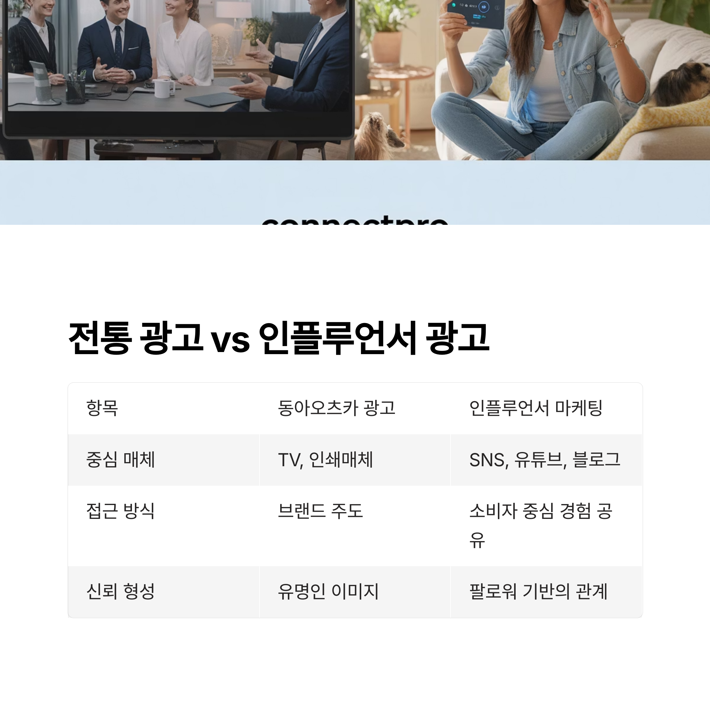 전통 광고 vs 인플루언서 광고 비교 표